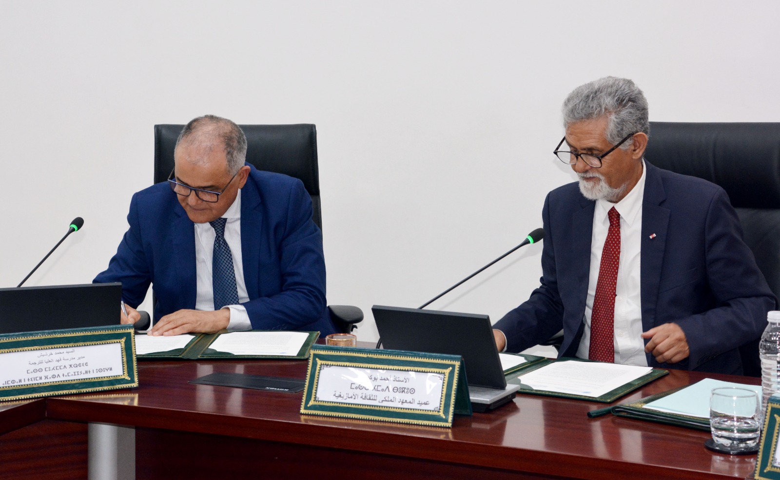 وأكد الأستاذ محمد خرشيش في كلمة ألقاها بالمناسبة على البعد الاستراتيجي لهذه الاتفاقية التي ستفتح آفاقا رحبة وواعدة من التعاون المثمر بين المؤسستين وستساهم لا محالة في تحقيق مجموعة من الأهداف، أهمها تبادل الخبرات في المجالات ذات الاهتمام المشترك وخاصة من خلال استفادة طلاب مدرسة الملك فهد العليا للترجمة من دورات تدريبية لصقل مهاراتهم المهنية، وإشراك أساتذة المعهد في برامج تكوين المترجمين وخاصة في مجال الترجمة التحريرية أو الفورية من اللغة الأمازيغية وإليها، وتنظيم أنشطة علمية وثقافية مشتركة، وترجمة مؤلفات ذات أهمية استراتيجية على الصعيد الوطني.