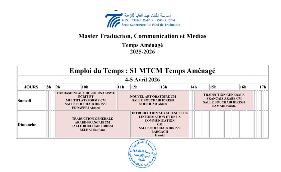 Emploi du Temps S1 MTCM TA 25-...