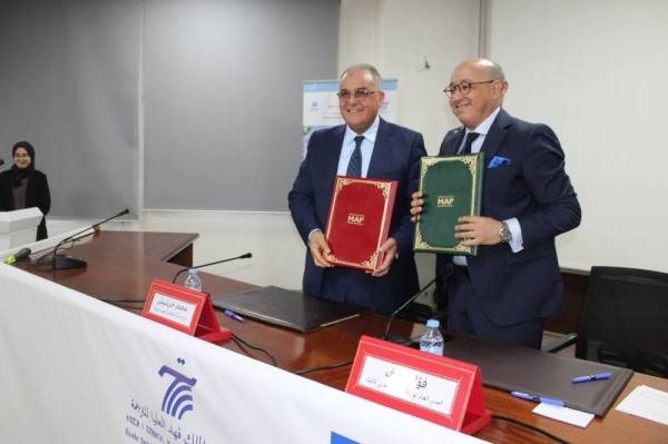 ترأس يوشتى المومني رئيس جامعة عبد المالك السعدي، مراسيم توقيع اتفاقية شراكة وتعاون بين مدرسة الملك فهد العليا للترجمة ووكالة المغرب العربي للأنباء، أول أمس الخميس. وذكر فؤاد عارف، المدير العام للوكالة بالمناسبة، أن" العمل الإعلامي والترجمة وجهان لعملية واحدة ذات قيمة لا تقدر بثمن" وأشار في معرض كلمىته، إلى أن" التعاون بين مدرسة الملك فهد العليا للترجمة بطنجة، ووكالة المغرب العربي للأنباء، أصبح يعد رهانا استراتيجيا بالغ الأهمية يلبي حاجيات المؤسستين".